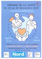 Venez participer aux différents ateliers, recueillir de précieuses informations pendant la Semaine de la Santé, organisée par le Centre Socio-Culturel de Fourmies du 25 au 28 novembre 2025.